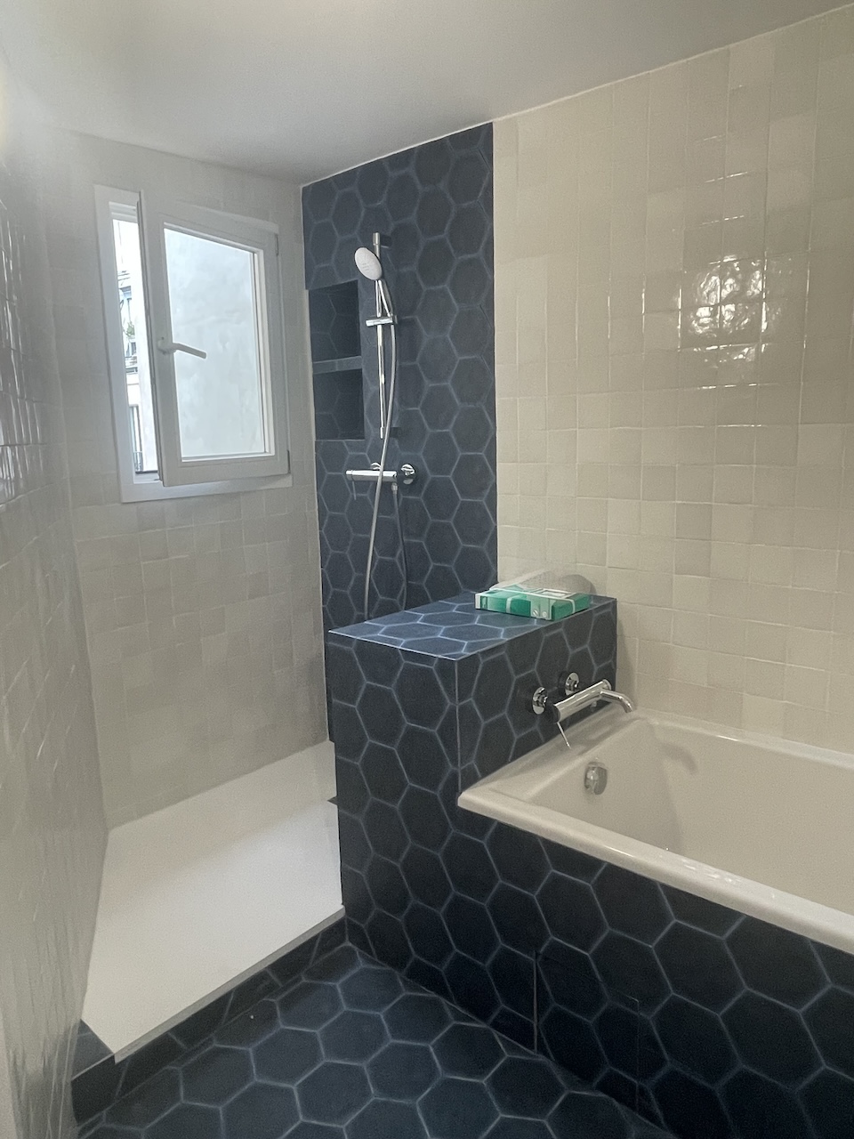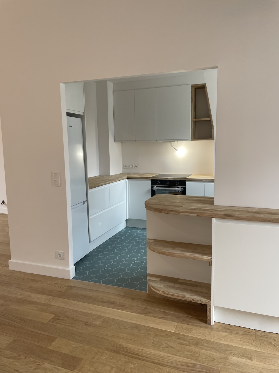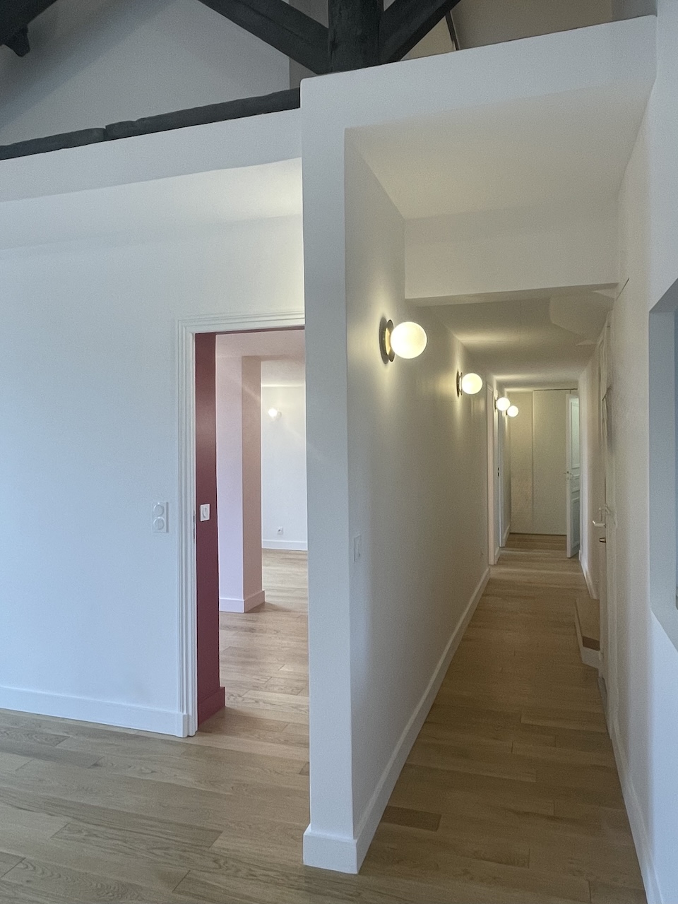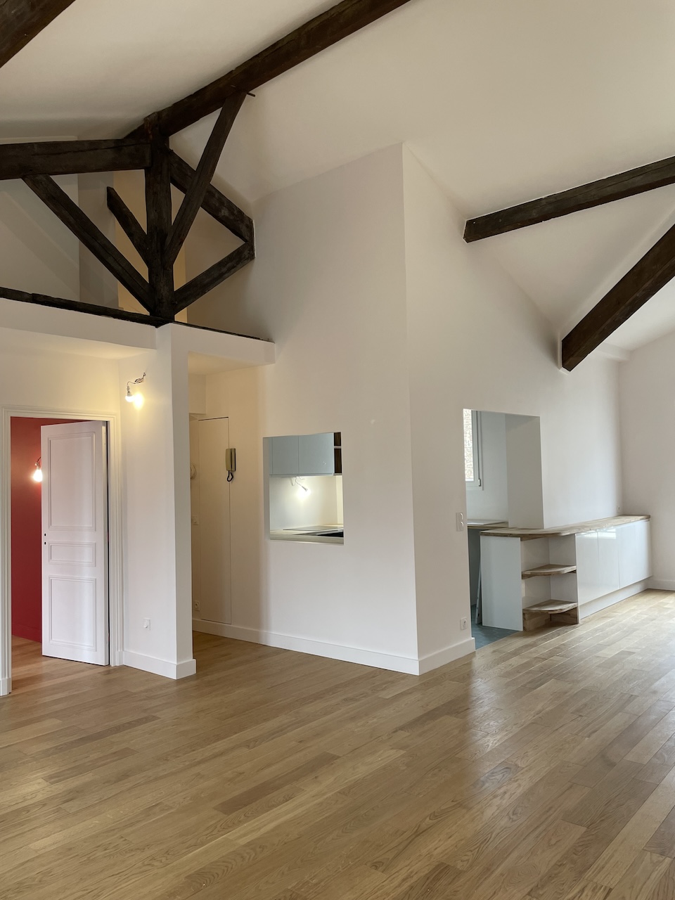 Au cœur du 14ᵉ arrondissement de Paris, nous avons eu le plaisir de transformer un duplex plein de charme en un véritable cocon. Niché dans un quartier vivant, cet appartement a conservé toute son authenticité grâce à ses poutres apparentes. Le sol en carrelage a été remplacé par un parquet chaleureux. La salle de bain a été entièrement repensée, avec un accès direct depuis la chambre parentale. Cela a également permis de repenser un long couloir qui mène à l’étage supérieur, coin réservé à un ado !